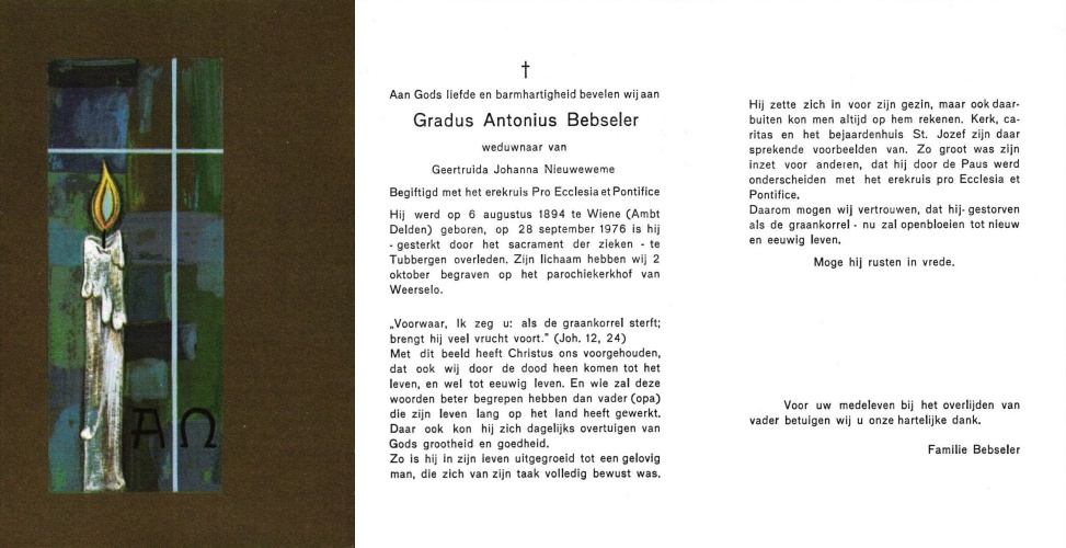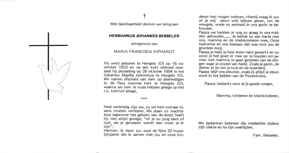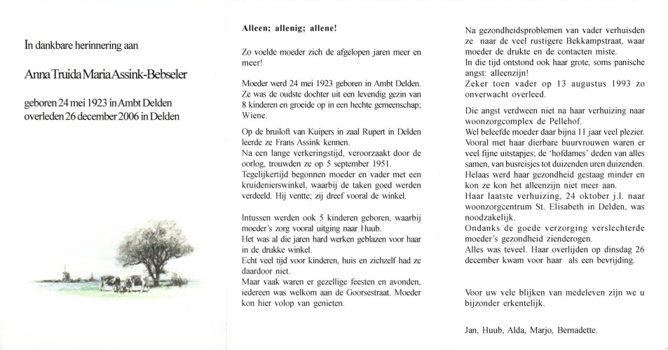 | Broekhuis | Johan Joseph Albertus | 22-8-1923 | Groot Agelo | 5-9-2005 | Agelo | Arkink | Anna Paula | ||
