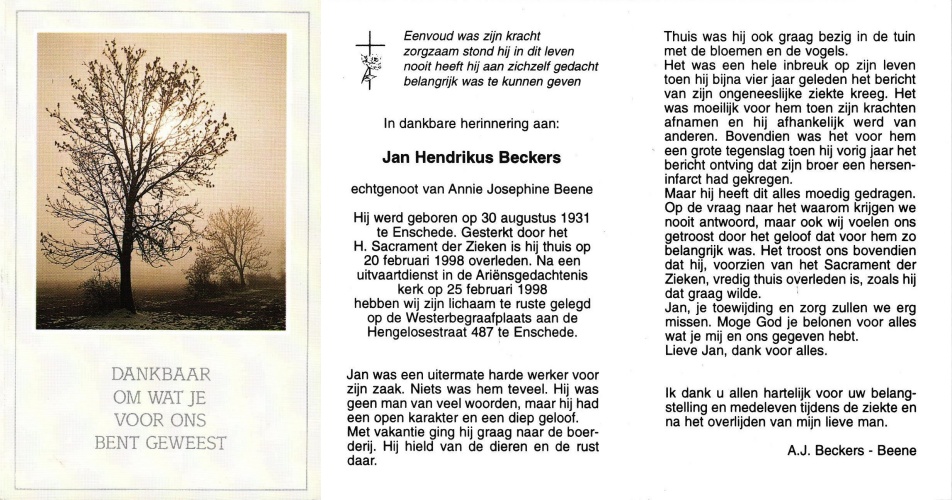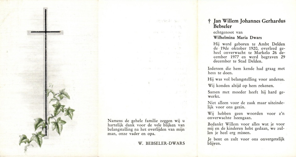 | Bekkedam, Jan Hendrik | 15-11-1878 | Bentelo | 01-05-1976 | Delden | Rupert, Hendrika | ||||