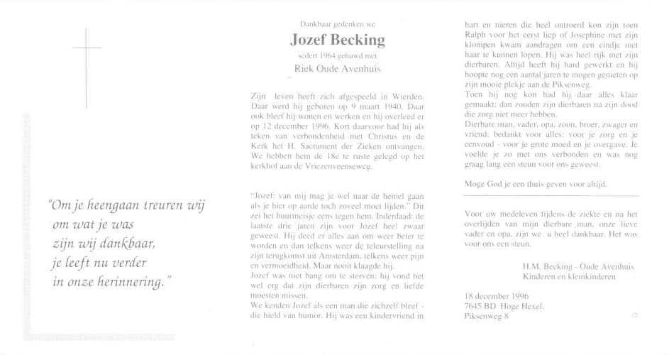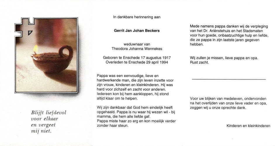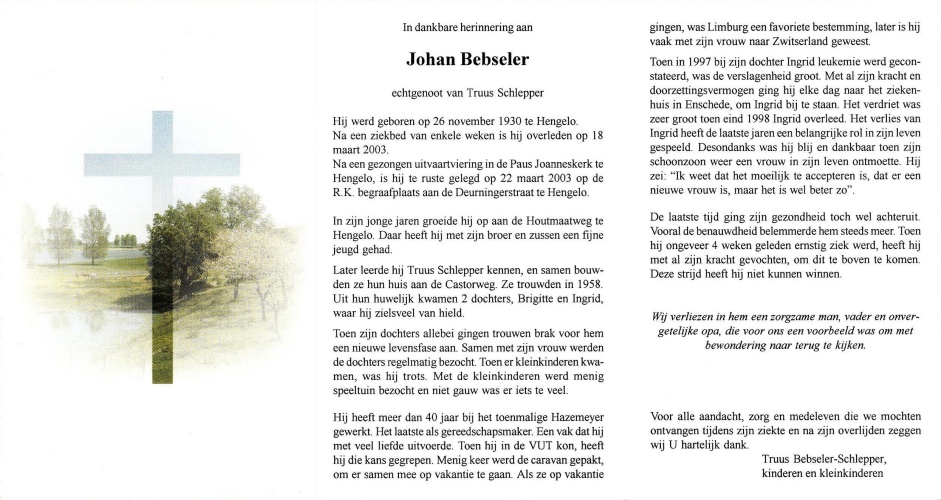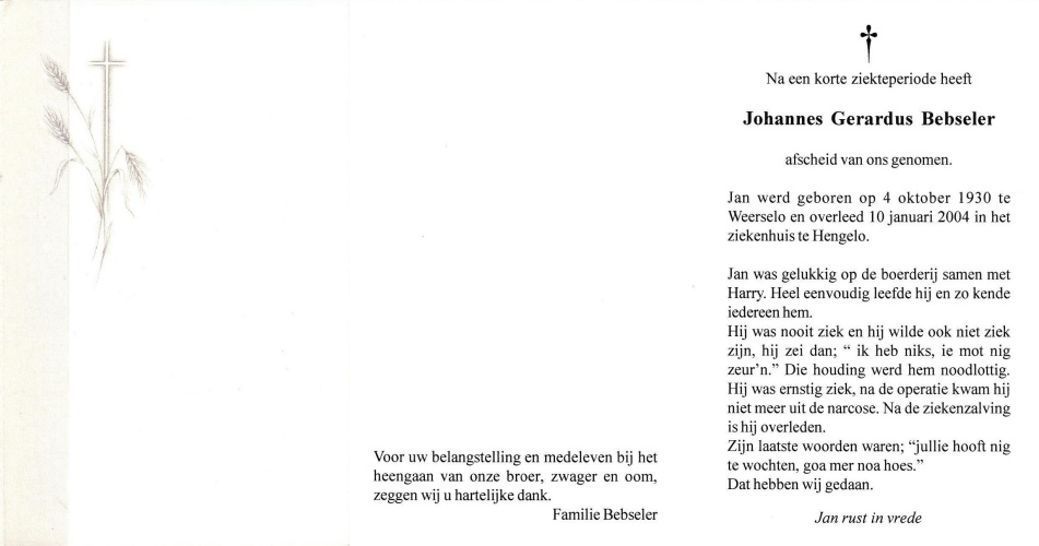 | Brunink | Johan | 20-4-1919 | Weerselo | 18-11-2002 | Oldenzaal | Peterinck | Rika | ||