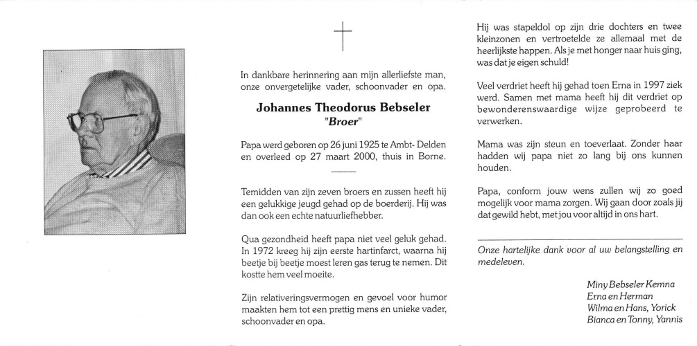 | Braak ter, Bennie | 05-07-1928 | Borne | 20-01-2002 | Borne | Leushuis, Marie | ||||
