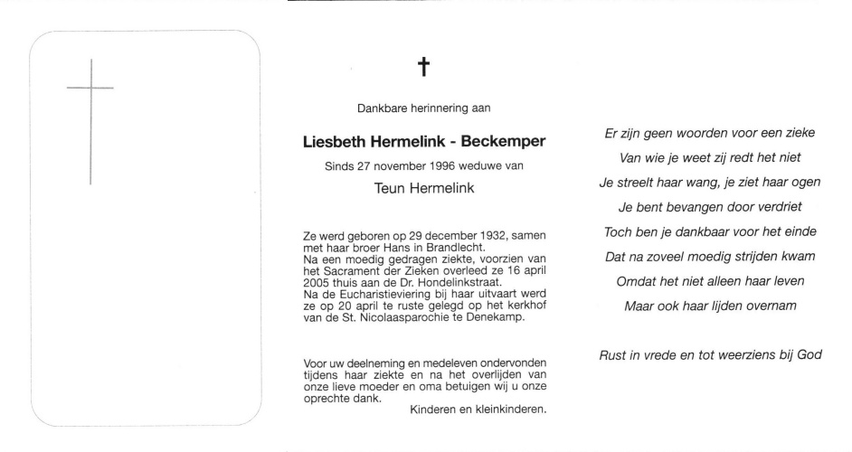 | Brokelman | Leo | 4-10-1949 | Ambt Almelo | 29-5-1996 | Almelo | Letteboer | Marietje | ||