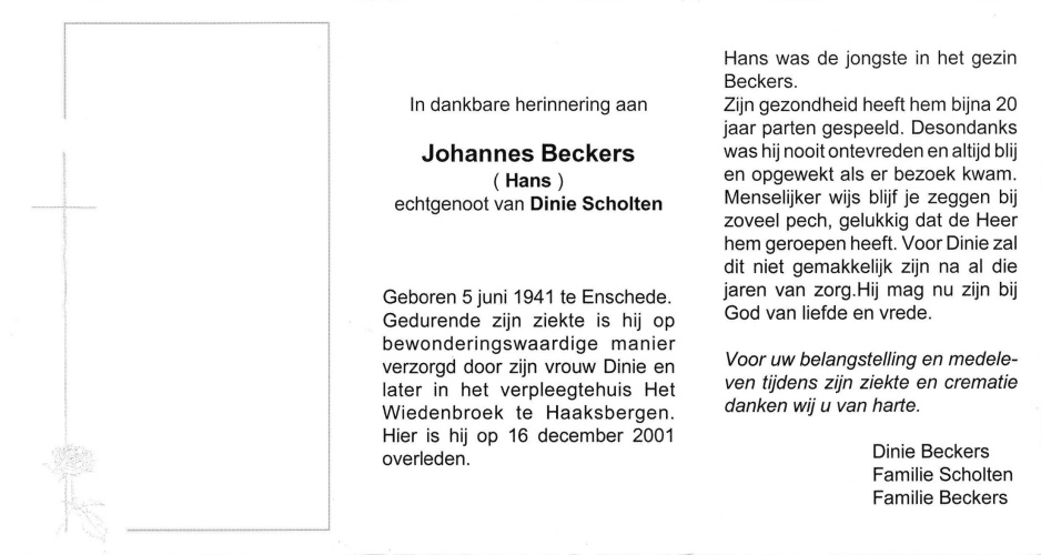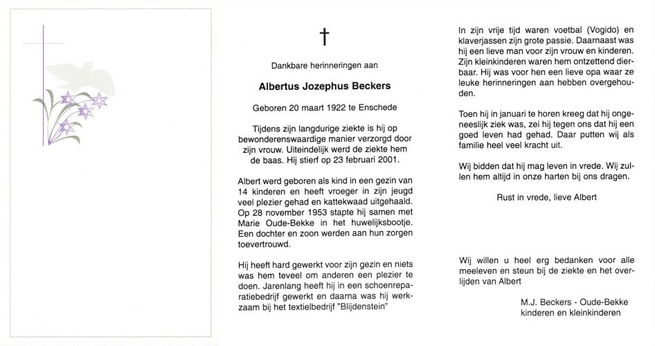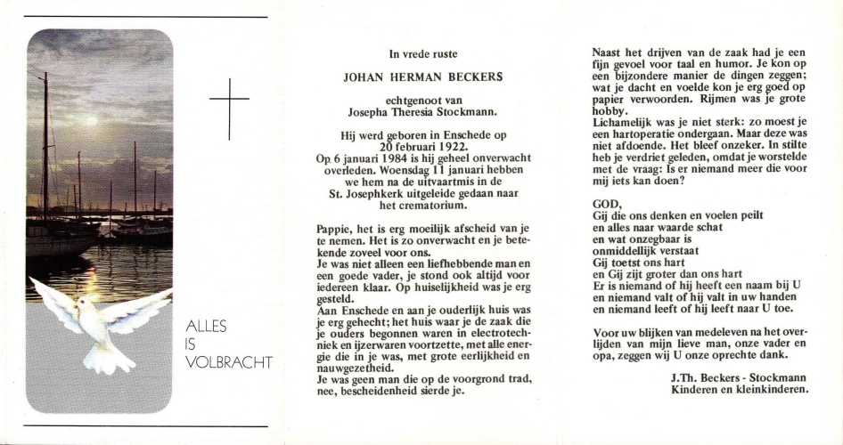 | Brinker, Imbertus Johannes Bernardus | 23-08-1911 | Enschede | 12-04-1993 | Enschede | Hek, Alberta Bernadina Maria | ||||