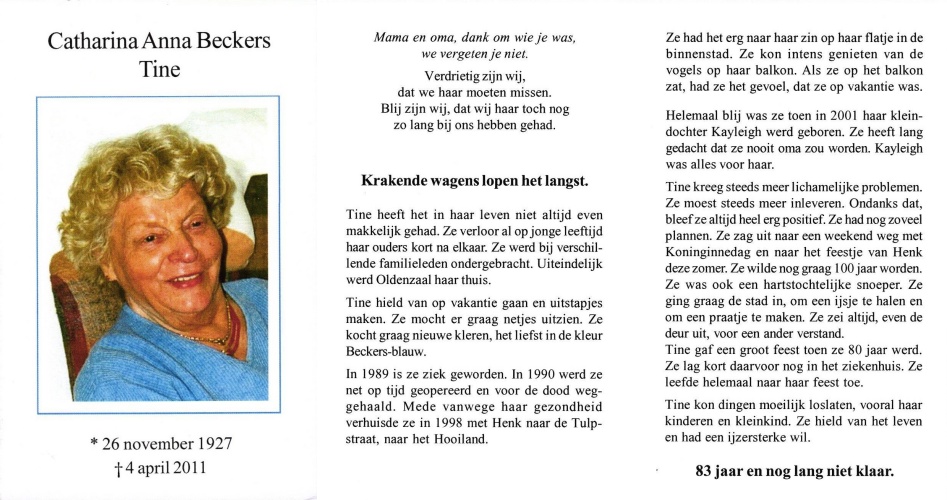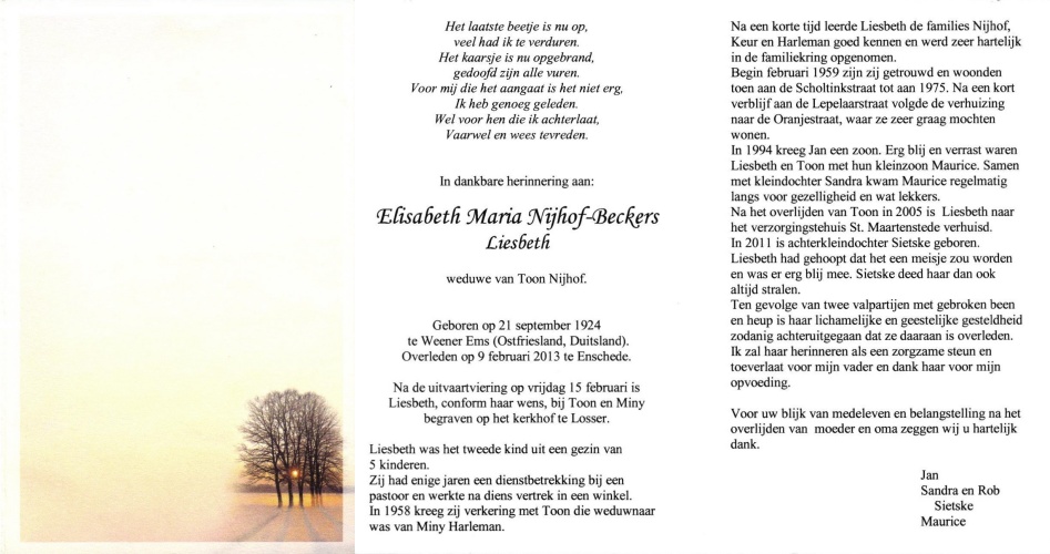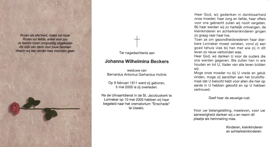 | Beernink, Hennie | 17-11-1936 | De Lutte | 25-02-2014 | De Lutte | Bosch, Marietje | ||||