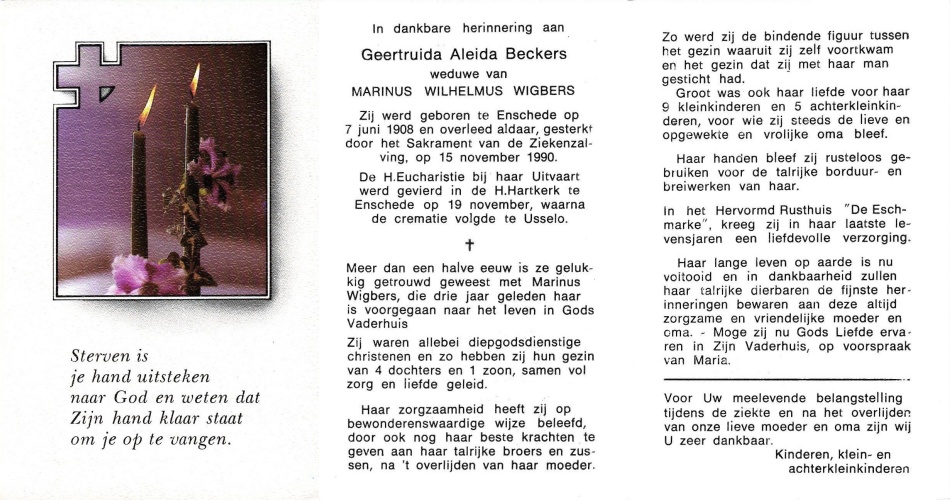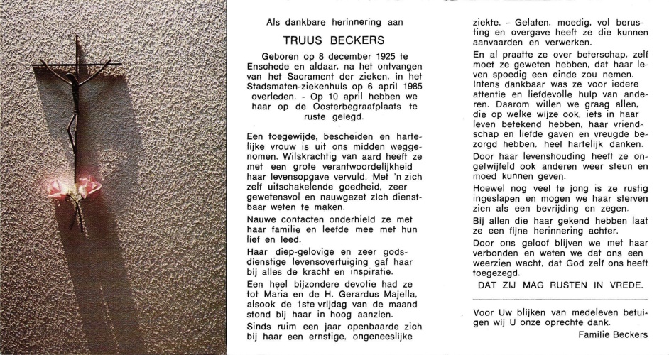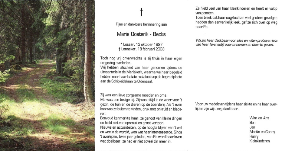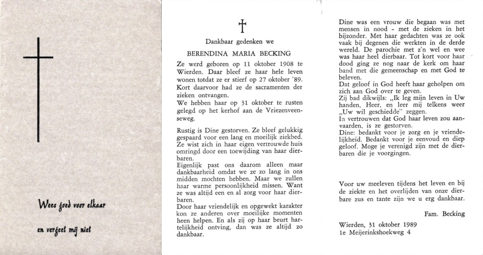| Bos van den, Gerharda Therisia | 15-12-1927 | Bornerbroek | 26-08-1997 | Almelo | Oude Middendorp, Gerhardus Johannes Jozephus | ||||