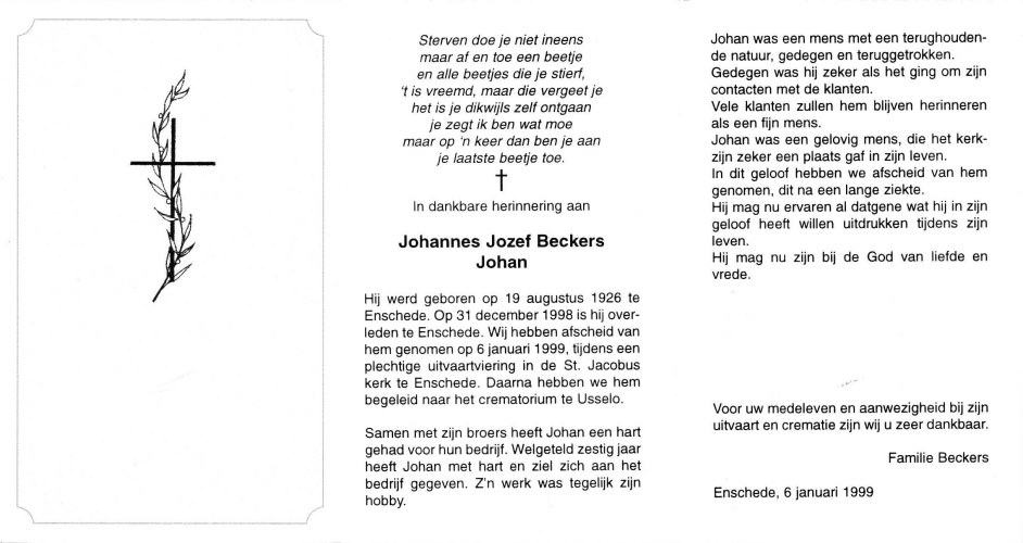 | Beld, Jo | 28-08-1916 | Almelo | 27-01-2000 | Almelo | Besselink, Herman | ||||