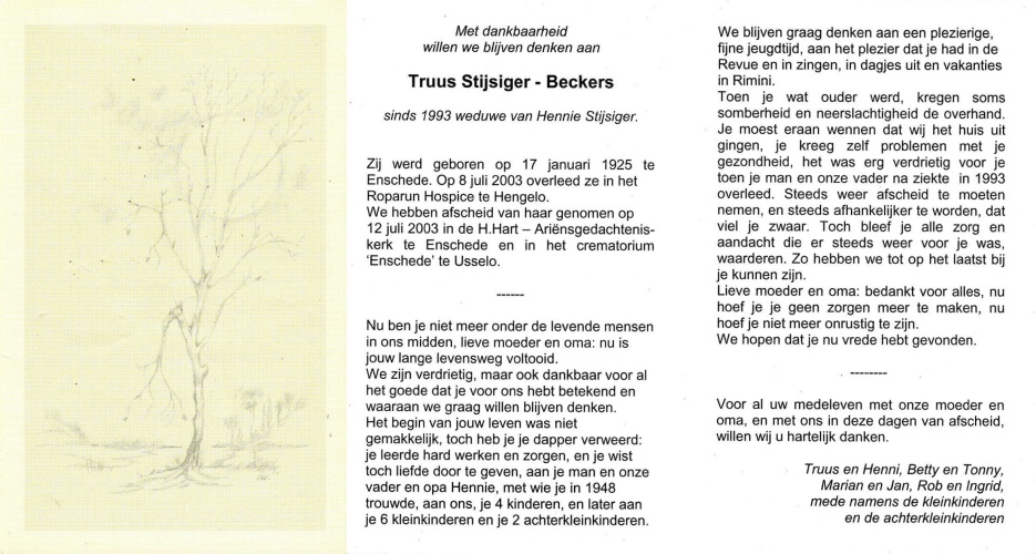 | Braamhaar, Annie | 13-01-1945 | Bornerbroek | 24-10-2012 | Hengelo | Tijhuis, Frans | ||||