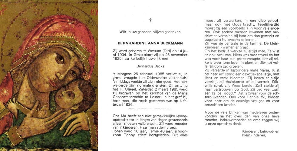 | Boerman | Mina | 27-7-1918 | Geesteren | 28-2-2000 | Geesteren | Beernink | Gerardus | ||