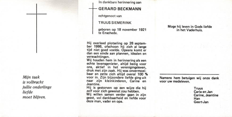 | Bruins, Gerhardus Bernardus | 12-06-1927 | Netterden | 22-09-2011 | Enschede | Beld, Rina | ||||