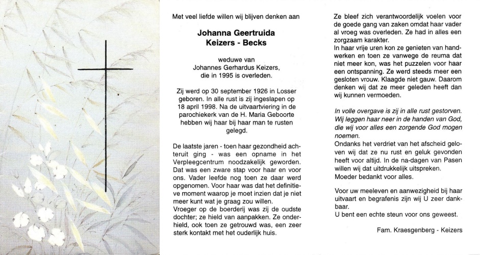 | Borghuis | Geertruida Berendina Johanna | 14-2-1924 | Weerselo | 31-8-2013 | Almelo | Molenkamp | Geert | ||