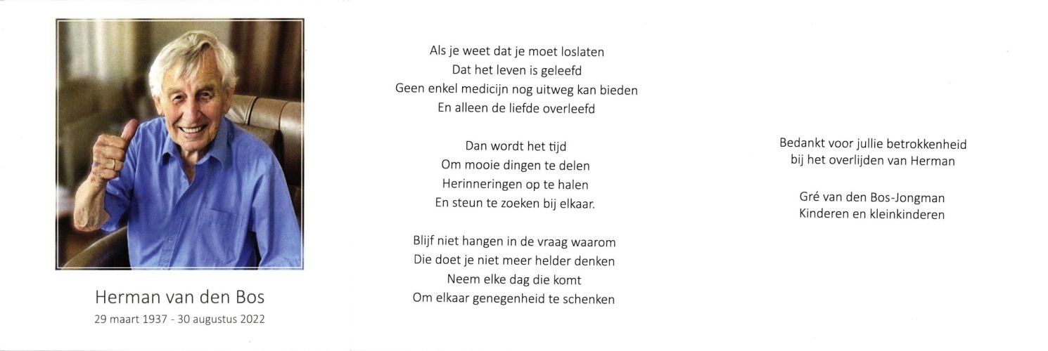 | Bos van den, Herman | 29-03-1937 | Bornerbroek | 30-08-2022 | Borne | Jongman, Gré | ||||