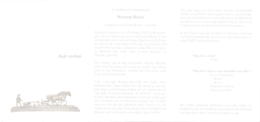 | Bosch, Herman | 12-02-1932 | Haaksbergen | 31-03-2007 | Hattem | Leferink, Paula | ||||